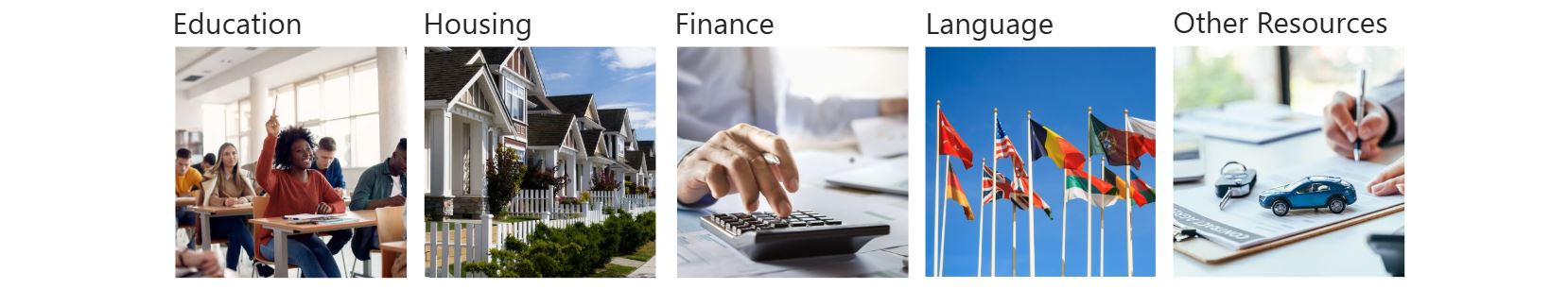 - Click one of the dashboard boxes to view dashboard reports for Education, Housing, Finance, Language, or Other Resources. The report page will load with data on the combination of population and region you selected.